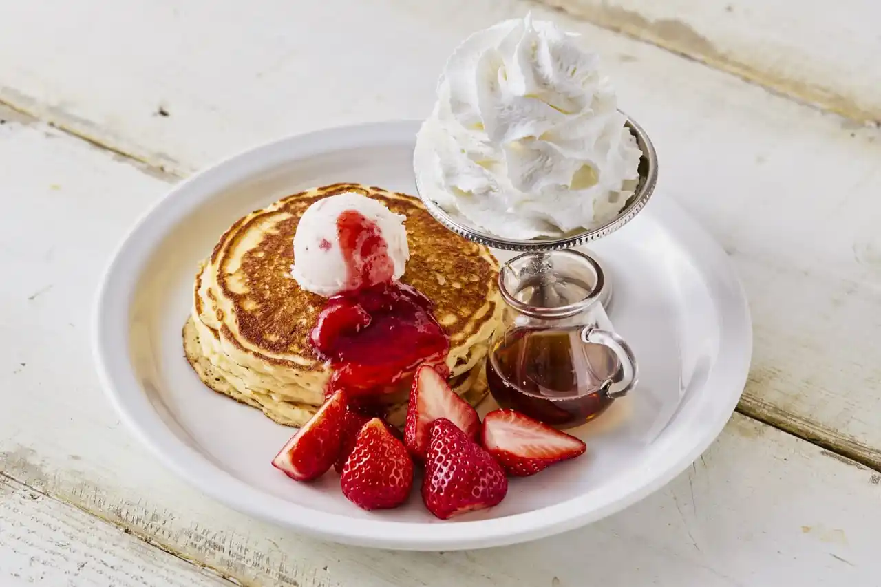 また、より気軽にお楽しみいただける「クラシックパンケーキ いちご」も同時展開いたします。シーンや気分に合わせてお選びいただけます。 |