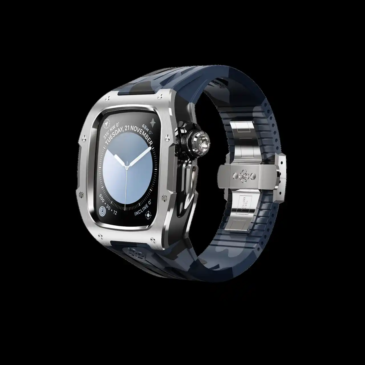 互換性:アップルウォッチ10 / 11 - 46MM 素材:チタニウム ケースサイズ:52,9 mm x 45,6 mm 防水:APPLE WATCHの防水性に準ずる ストラップ:ラバーストラップ、バタフライバックル 重量:153グラム (Apple Watch本体含まない 付属品:BOX、取り扱い説明書、専用ピン |