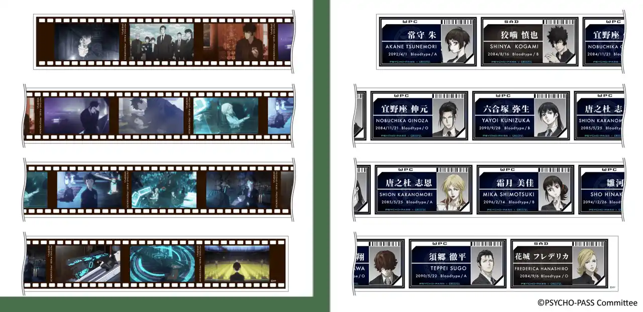 クリアファイルとリングノートは、公安局刑事課マークとキャラクターイラストのそれぞれ2種類を展開。公安局刑事課マークはまるで支給品のような本格的なデザインが魅力で、キャラクターイラストは存在感があり、作品の世界観をしっかり味わえる仕上がりです。そのほか、劇中に登場するアイテム「ドミネーター」などをデザインしたダイカットステッカーや、好きな場面やキャラクターを切り取って使えるクリアロールステッカー、スマホやPC、手帳などのアクセントとして存在感をプラスできるミラーステッカーを販売します。 |