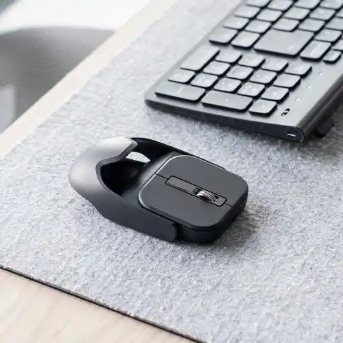本製品最大の魅力は、マグネットで簡単にパーツを着脱できる画期的な構造です。パーツを取り付ければしっかり握れる「フルサイズ」として長時間のデスクワークで活躍し、外せば持ち運びに最適な「コンパクトサイズ」に早変わりします。作業環境やシーンに合わせて、1台で最適な操作感を直感的に選ぶことができます。 |