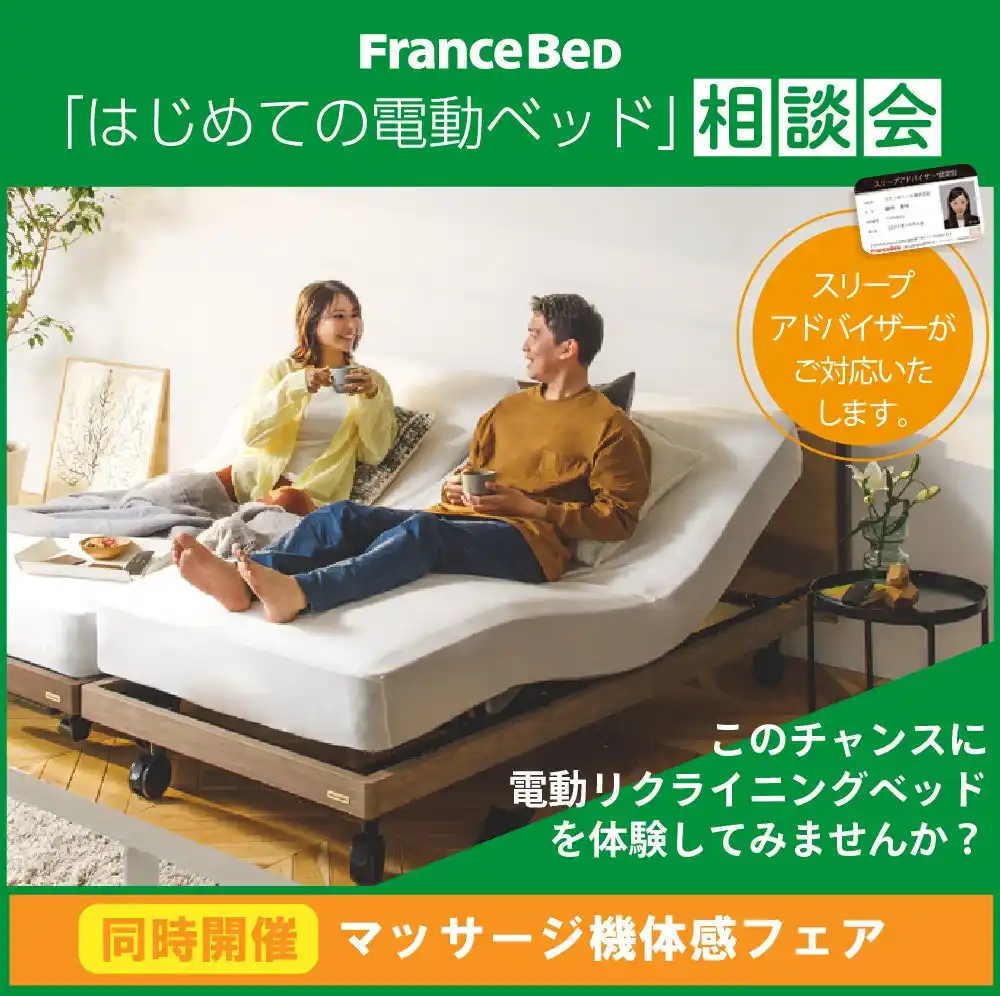 今回、当イベント会場にてFranceBedが主催する、電動ベッドの相談会を開催いたします。 |