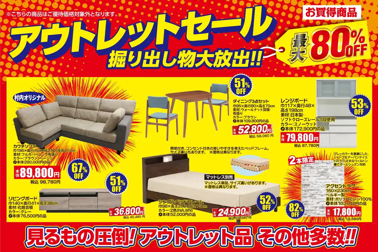 その他、大変お買い得なアウトレット品を多数ご用意しております。 |