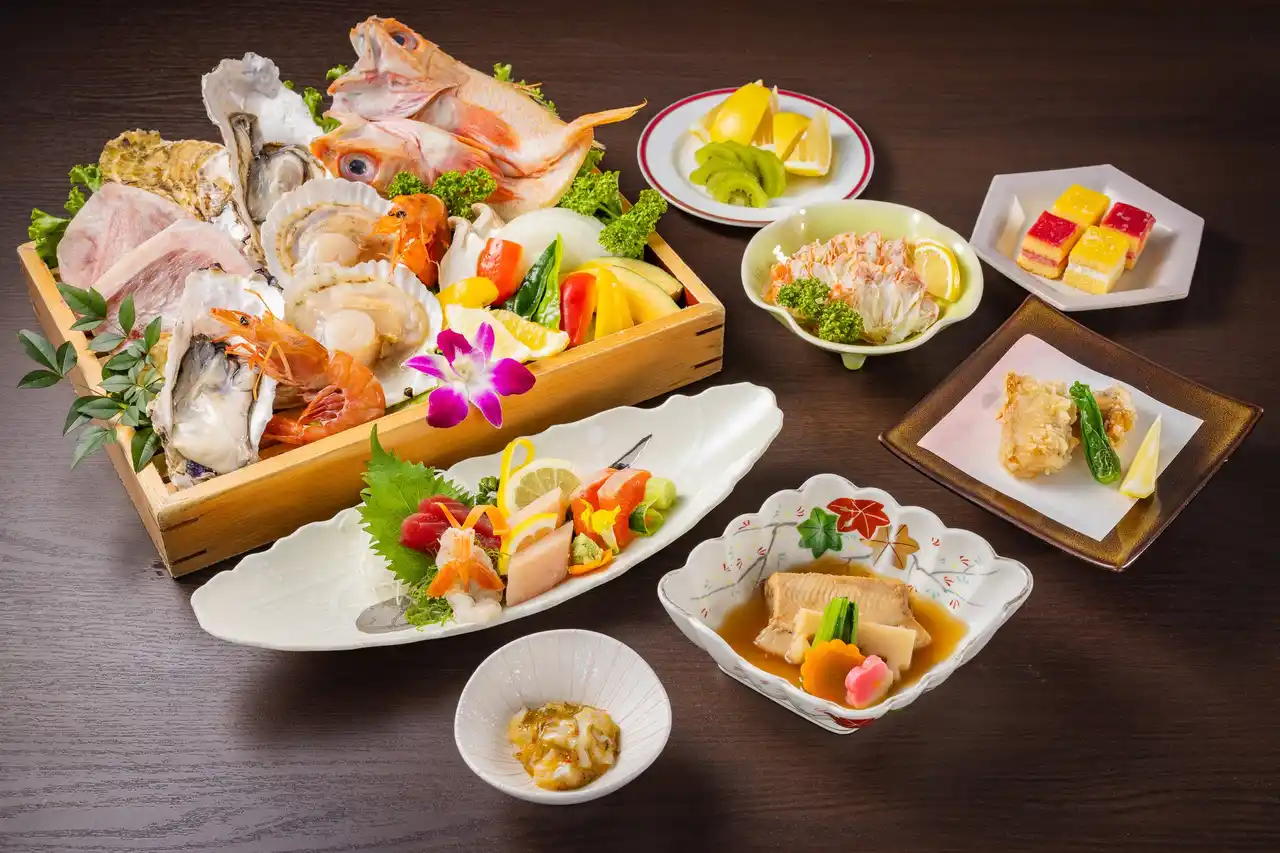 三陸産牡蠣や吉次(キチジ)、帆立などを無煙ロースターで焼き上げる海鮮会席。港町ならではの旬の味覚を満喫できます。 |
