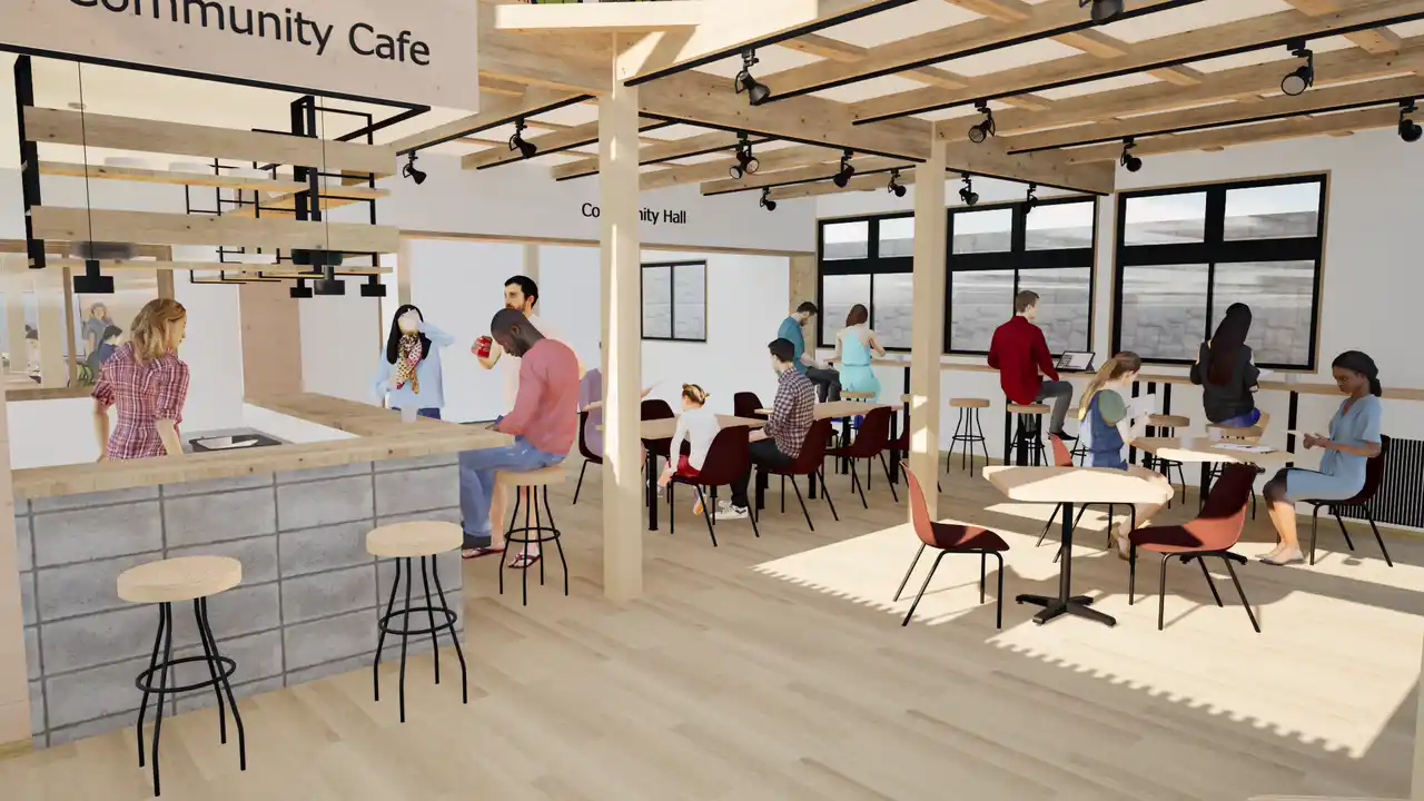 交流棟では、コミュニティカフェやコミュニティホール、ワークエリアなどを完備。施設のコンセプトである「学びと挑戦」を後押しします。 |