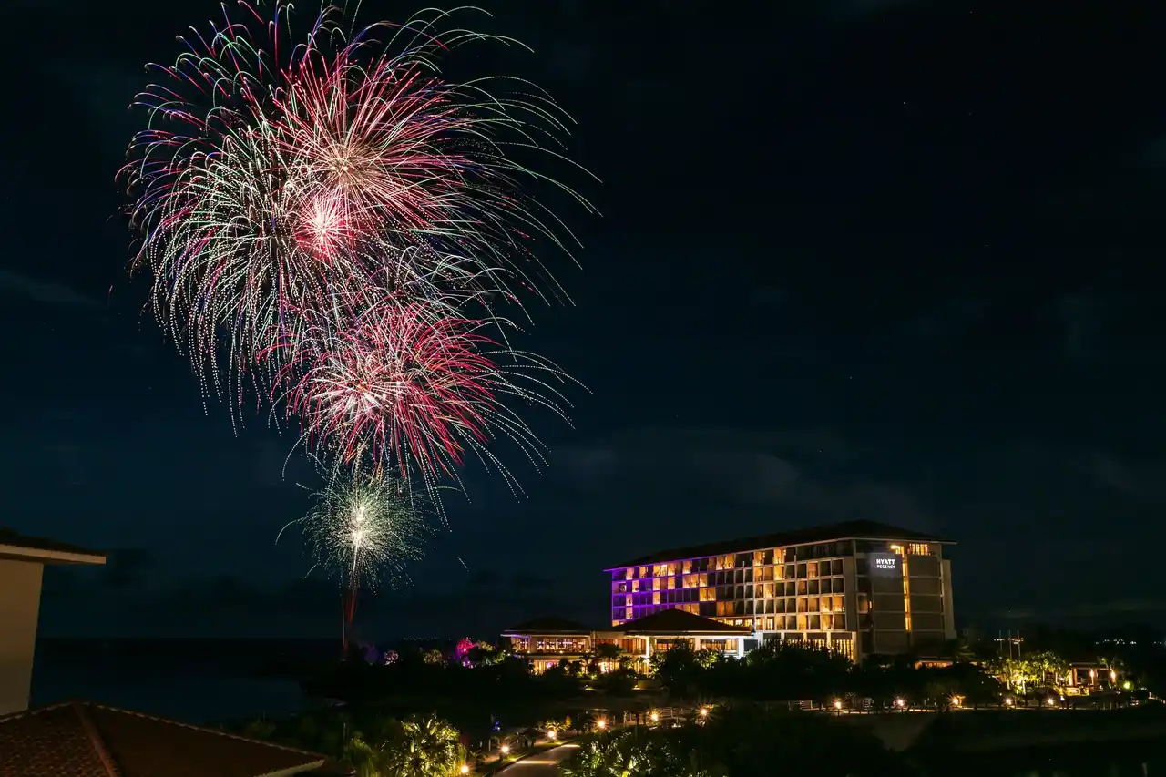 ゴールデンウィーク期間中は、瀬良垣ナイトプールをさらに盛り上げるホテルイベントが充実しています。5月2日(土)・3日(日)・4日(月・祝)の3夜にわたり、打ち上げ花火が瀬良垣の夜空を鮮やかに染め上げます。また、5月2日(土)には、まさに沖縄の魂そのものといっても過言ではない、沖縄の伝統芸能「エイサー」を力強く披露いたします。DJパフォーマンスは4月29日(水・祝)~ 5月5日(火・祝)の期間、連日にわたりプールサイドをドラマティックに演出します。 |