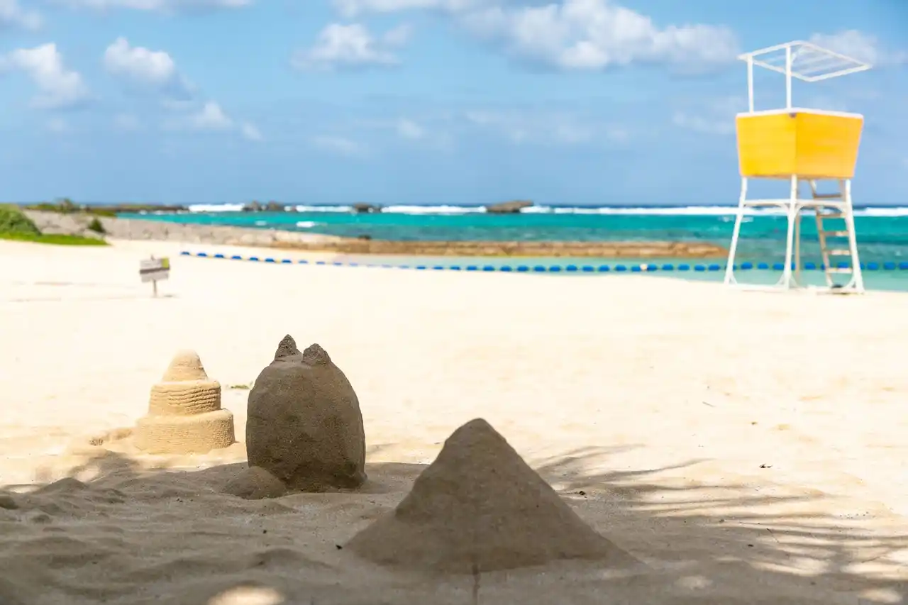 瀬良垣ビーチで好きなモチーフを砂で形づくる「サンドアート」を楽しめるプログラムです。スタッフが上手に作るコツや崩れにくい作り方をレクチャーしながら、思い思いの作品づくりをサポートします。 |