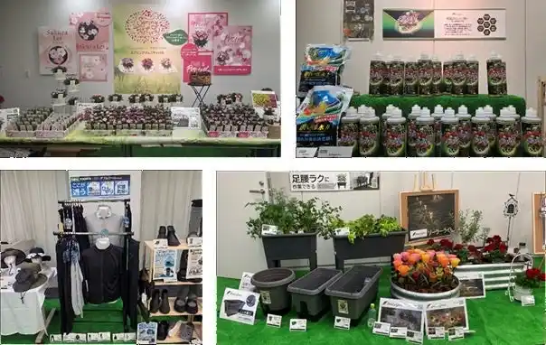 その他、優しく可憐な花が咲くダイアンサス『さくらレイ』、微生物バイオスティミュラント配合で環境ストレスに強い丈夫な野菜を育てる『タフリキ7(セブン)』、これから暑くなる時期のガーデニングをサポートする『-10℃ダブルクールUVパーカー』や『給水式菜園プランター』シリーズなど、新商品を数多く展示いたしました。 |