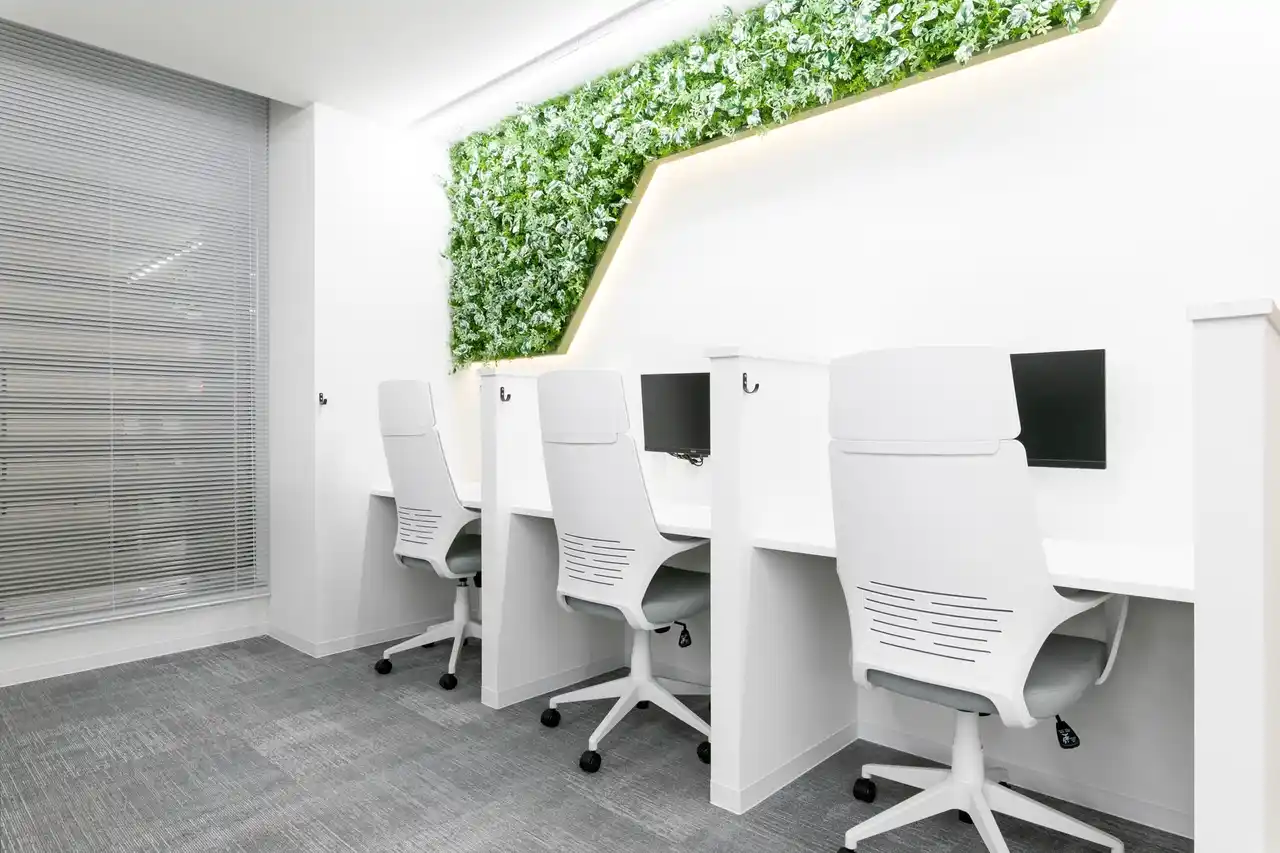 施設内には会議室を併設しており、お客様との商談や面接、WEB会議などに利用できます。1名用個室型のWEB会議ルームも備えており、周囲を気にせずオンライン会議に参加しやすい環境です。 |