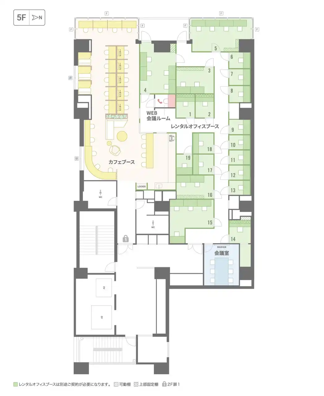 設備:無線LAN、フリードリンク、無料プリンター、ロッカー、ポスト、登記可、会議室、WEB会議用個室 |