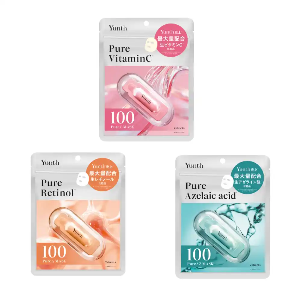 *1 2026年3月時点Yunth商品におけるそれぞれの成分(アスコルビン酸、レチノール、アゼライン酸)において |