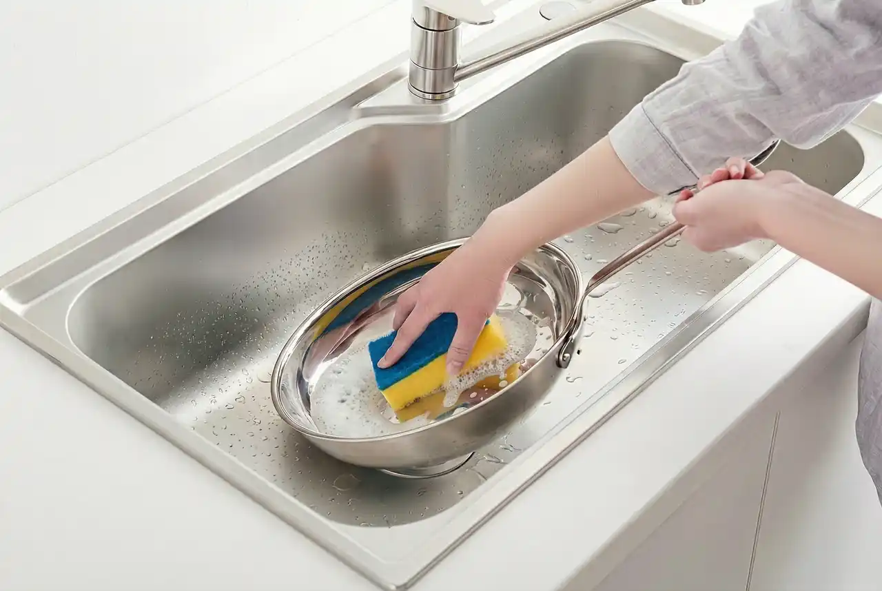 鉄フライパンのようなシーズニングは不要。使用後は洗剤とスポンジで洗うだけの簡単なお手入れでお使いいただけます。 |