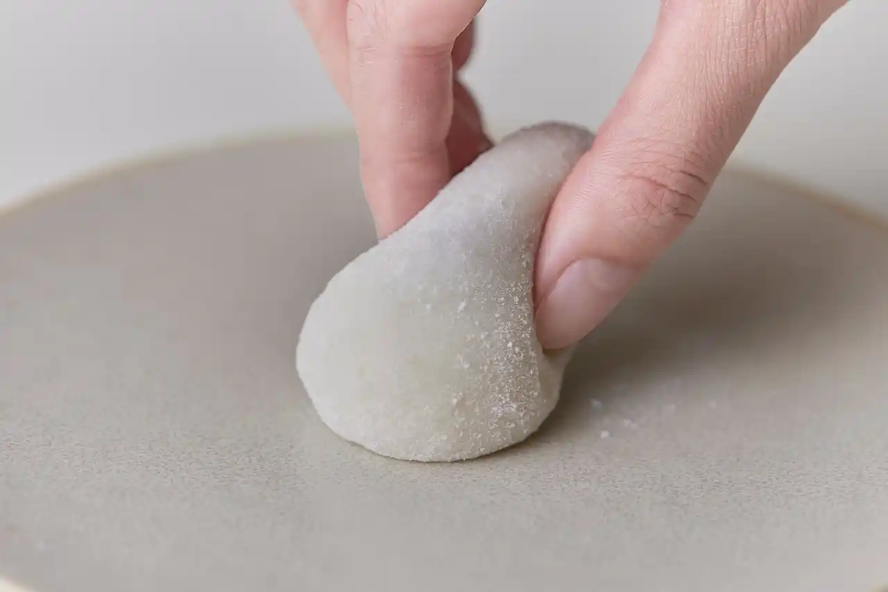 北海道産のもち米を使用したやわ餅に、北海道産のクリームチーズを贅沢に練り込みました。つきたてのお餅にメレンゲを加えることで、やわやわでもっちりとした食感と、とろけるような口どけを実現しています。 |