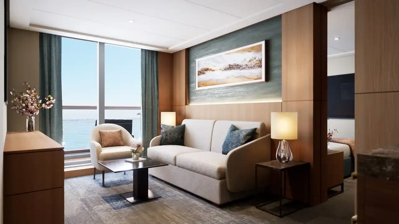 ミッドシップスイートでは、47都道府県をテーマにした客室が設けられ、観光地にとどまらず、食文化や工芸、アートなど、日本各地の多彩な地域資源が紹介されています。 乗客は船旅を楽しみながら、日本各地の文化や風土を五感で感じる体験ができます。 |