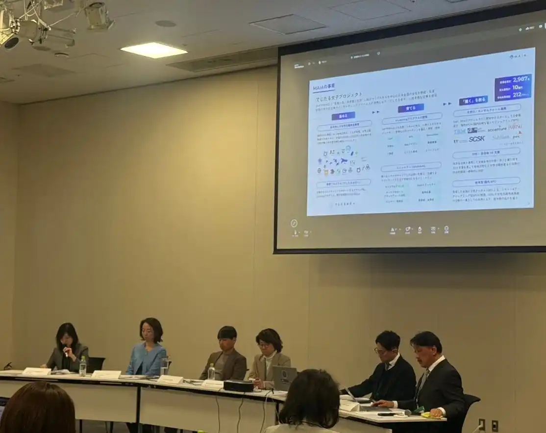 月田有香氏(株式会社MAIA 代表取締役CEO)は、出産や転勤によってキャリアを継続できない女性が多い現状を背景に、女性が地域にいても働き続けられる仕組みをつくるためMAIAを創業したと説明しました。自治体と連携して女性を集め、SAP・RPA・生成AIなどの分野でリスキリングを行い、コミュニティで支え合いながら学びと就労につなげていると紹介しました。また、企業と協働し、ワークシェア型のOJTで実務経験を積める環境を整備。アクセンチュアでの大規模活用事例や、地域企業のDX支援にも取り組み、女性の力で地域経済を支えるモデルを広げていく重要性を強調しました。 |