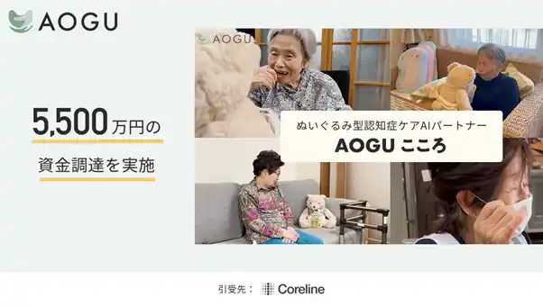ぬいぐるみ型認知症ケアAIパートナー「AOGUこころ(愛称:ここちゃん)」を開発するAOGU株式会社(本社:東京都千代田区、代表取締役:坂田惟之、以下「AOGU」)は、シリコンバレーに本社を持つCoreline Ventures様を引受先とする第三者割当増資により、シードラウンドにて5,500万円の資金調達を実施いたしました。 |
