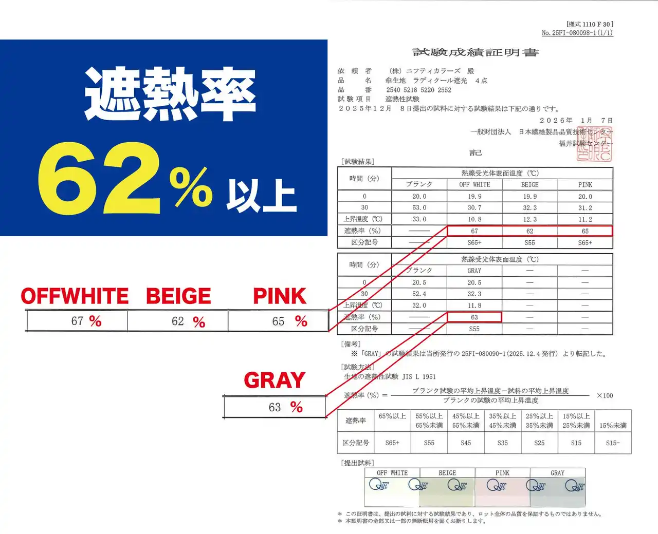 | 遮熱率62~67%(公的検査機関試験結果) | |||||||||||||||