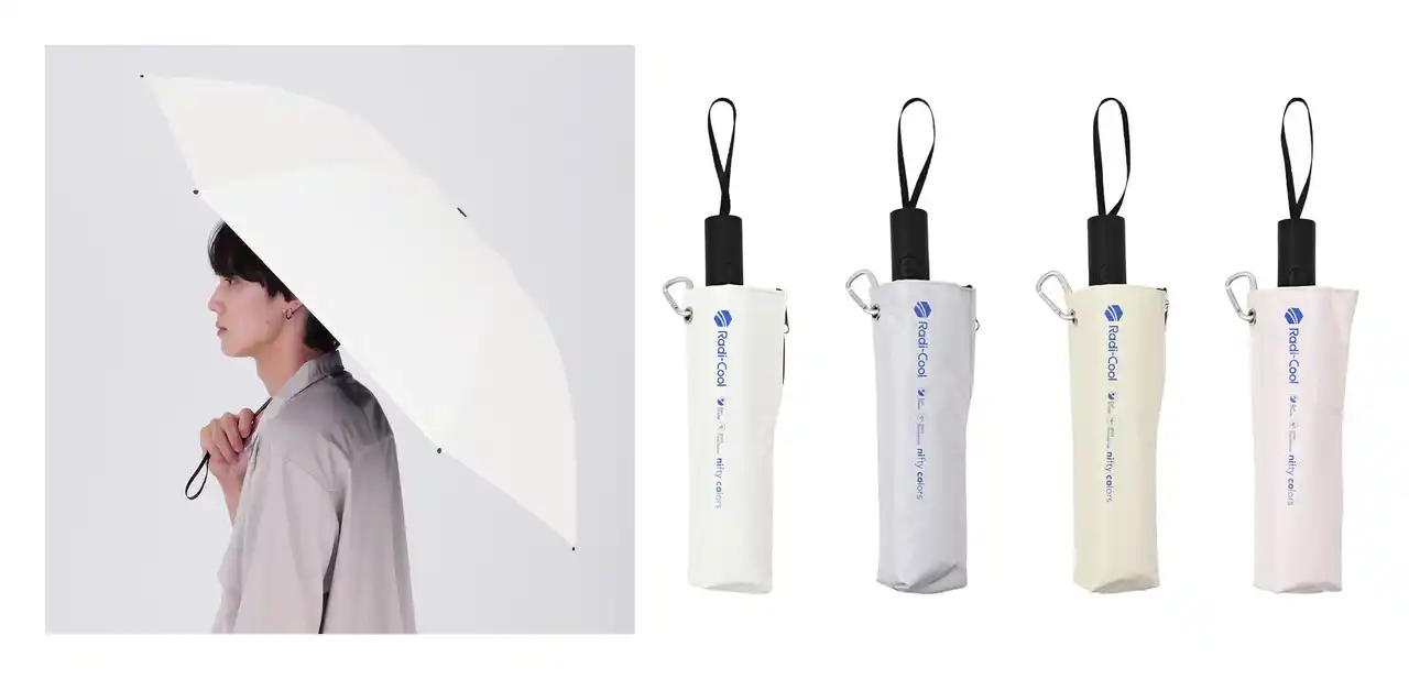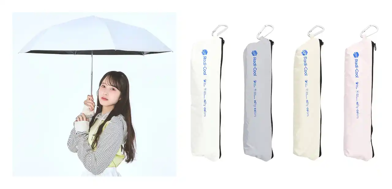 | 同社は、電力などのエネルギーを使用せずに熱を外部へ逃がす放射冷却技術を応用した『Radi-Cool(ラディクール)』HCシリーズ生地を採用。紫外線や熱中症対策としてユニセックスに対応した日傘4型と、自転車など日傘が使えないシーンでも活躍するシェードが取り外せるハットを展開しています。 | |||||||||||||||