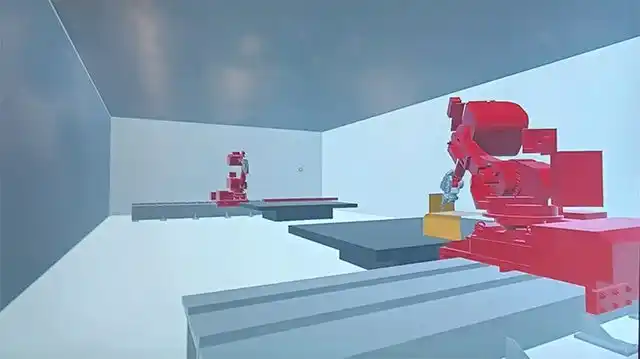 ロボット型レーザー溶接機の動きをVRで再現したもの。通常の機械は安全上近づくことができないが、VRでは近距離で様々な方向から機械の動きを知ることができる。 |