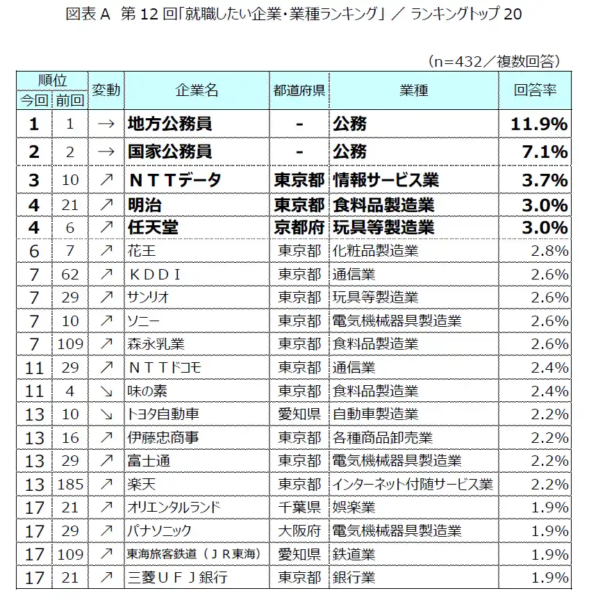 (1)トップ20は国内企業が占める/公務員人気は継続 |