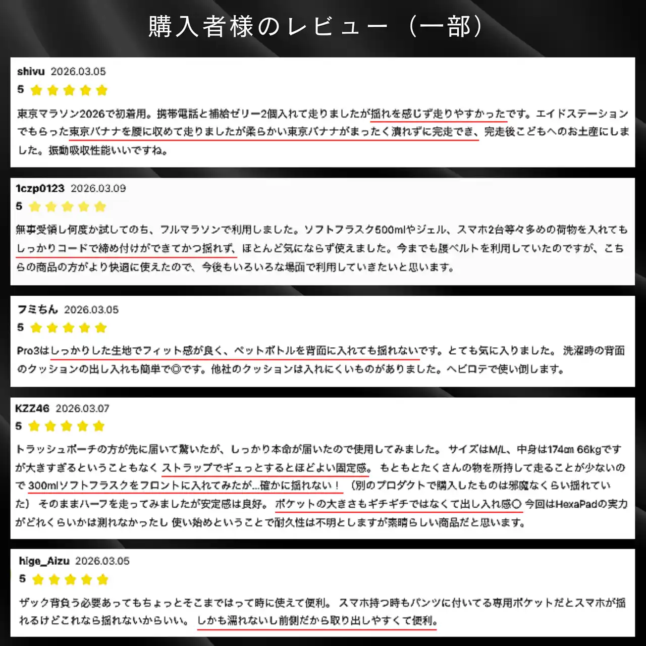 購入し、実際に試走された方からMakuakeに届いたレビュー(一部抜粋) |