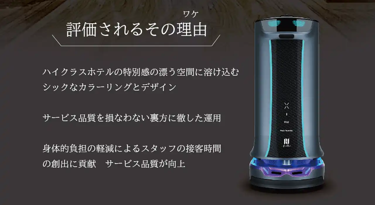 これらを同時に実現できます。さらに本ロボットは、シックで落ち着いたデザインでレストランの雰囲気を壊さない外観設計。目立たず裏方に徹する運用思想を採用。 |