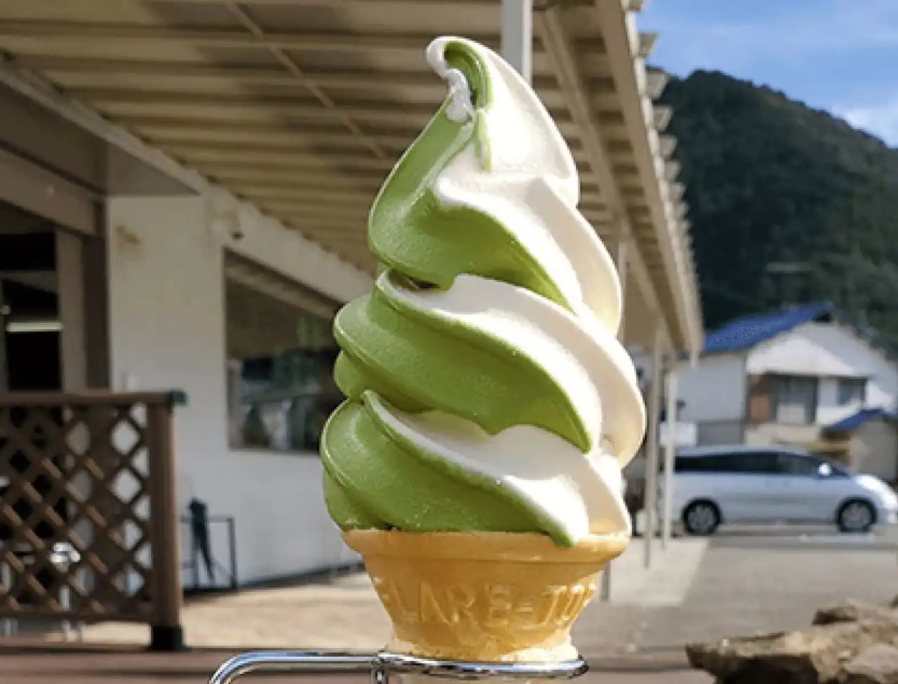 高級抹茶を、北海道産の濃厚なミルクソフトに練り込みました。 |
