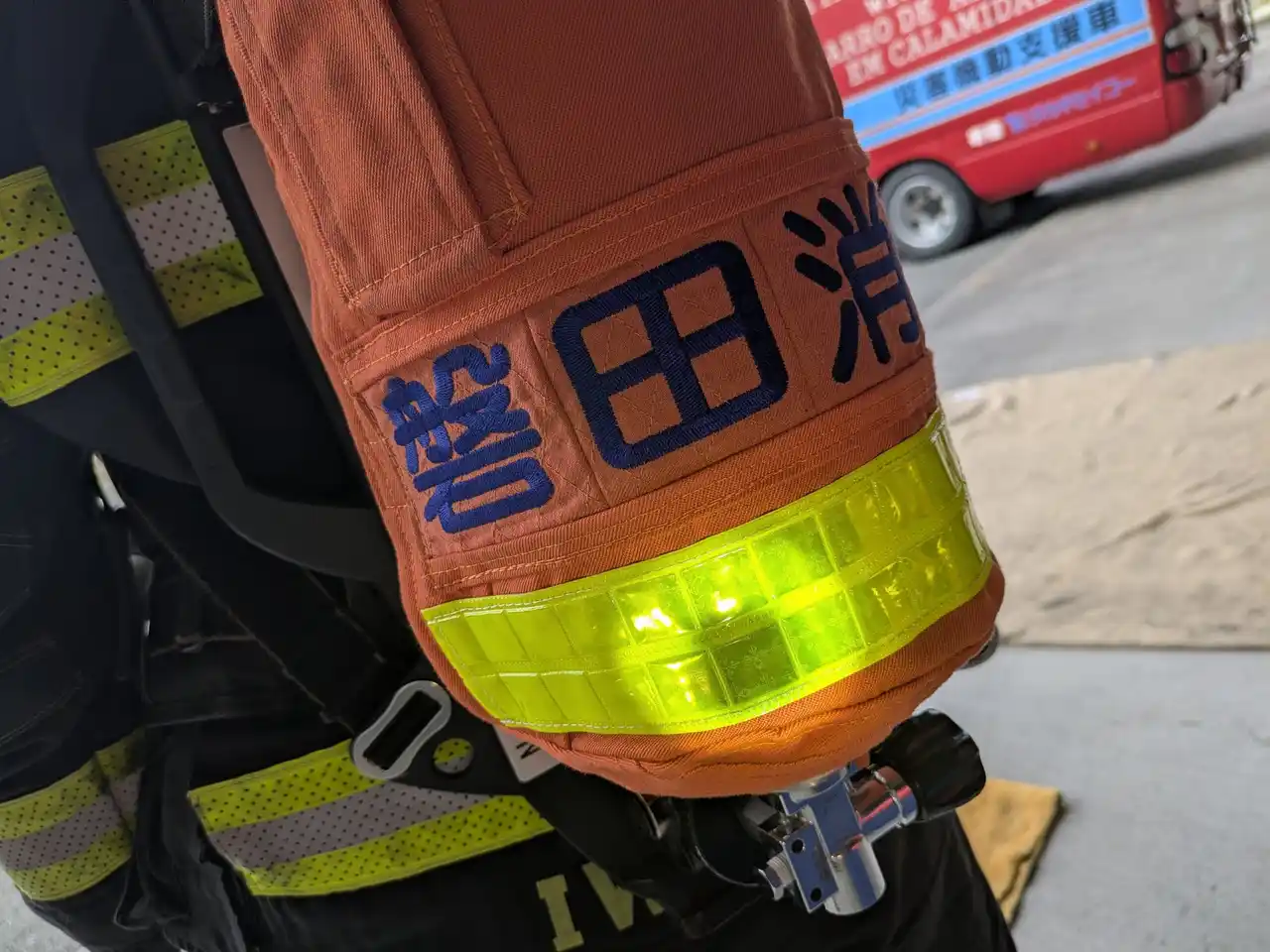 ・反射板を取り付けることで、夜間や煙の中など、視界が悪い現場での視認性を向上させました。 |