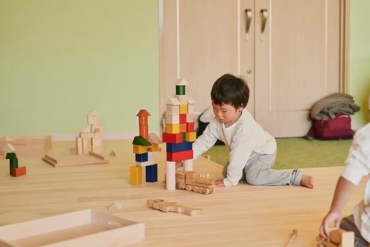 「森のひろば」では、お子さまが直接手に触れ、木の温もりや質感を体感できるスペースを目指しました。床材や設置する木製おもちゃに三重県産木材を使用し、天然の蜜ロウワックスを塗布、おもちゃはホテルロゴを刻印したオリジナル仕様です。 |
