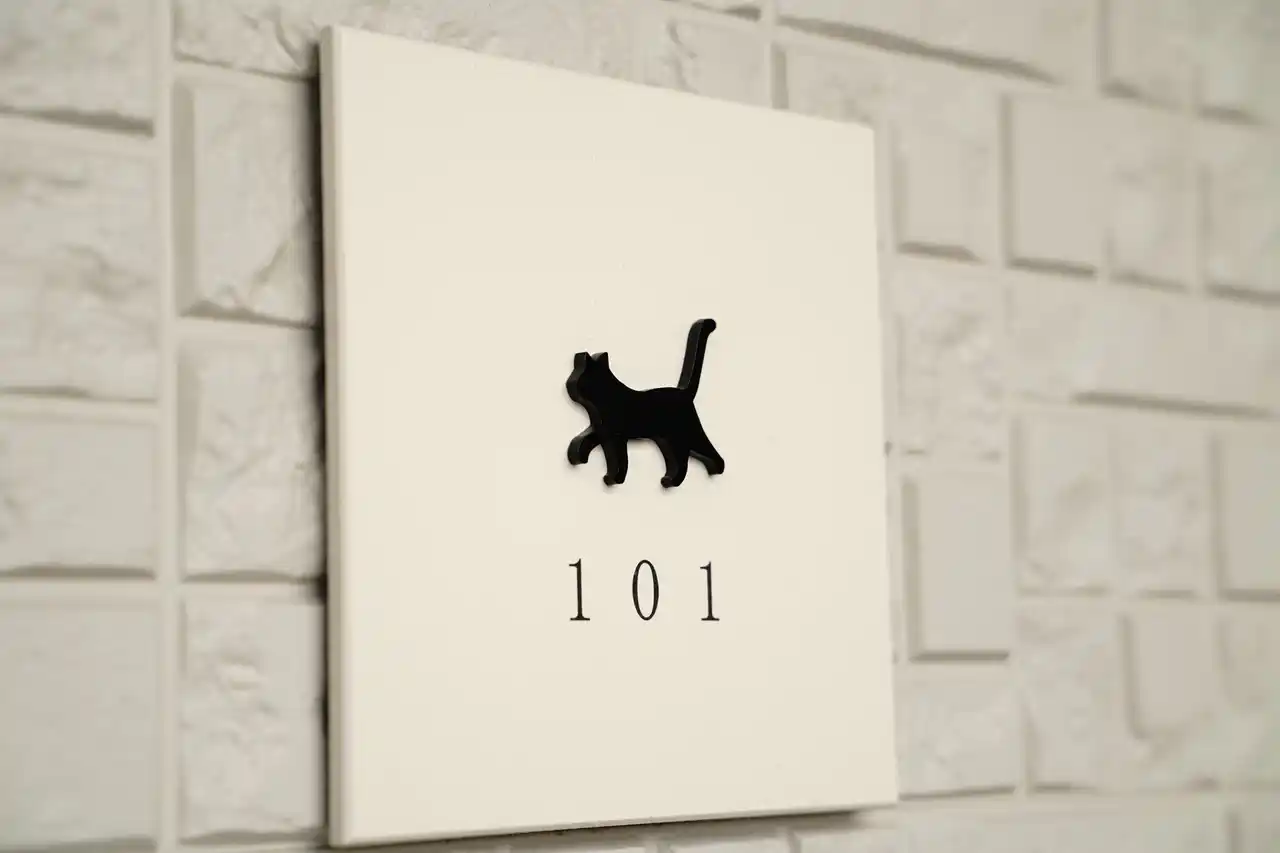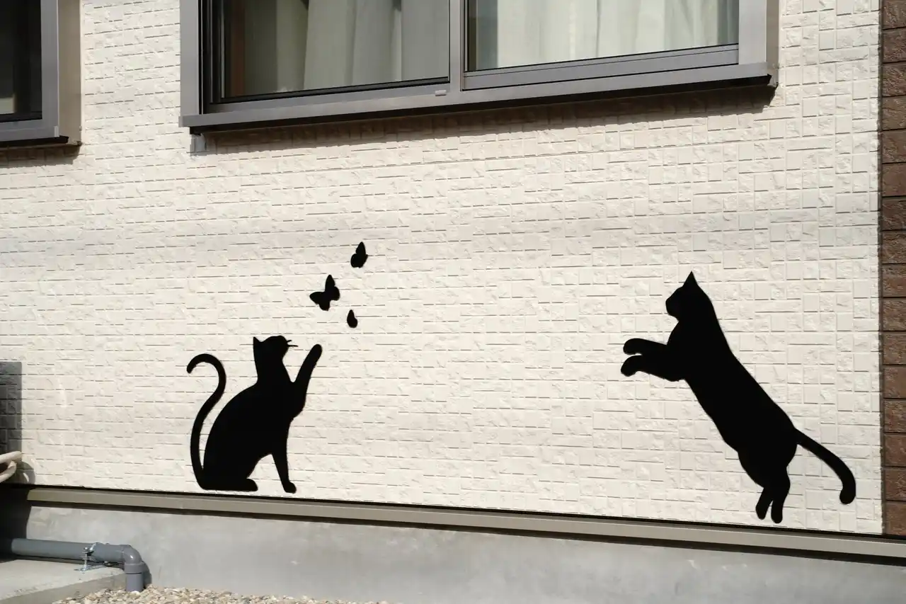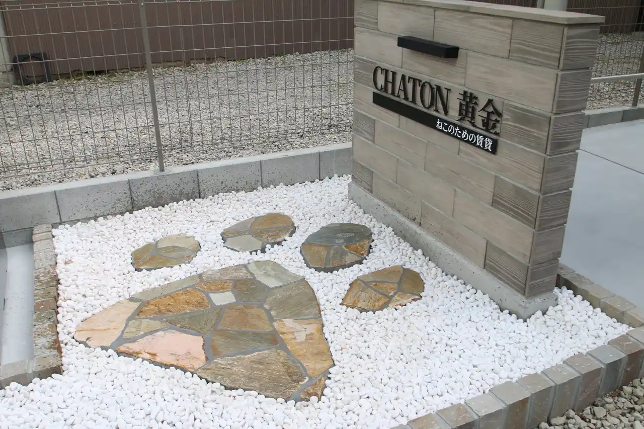 お部屋だけでなく、外観も猫ちゃんがいっぱい。 |