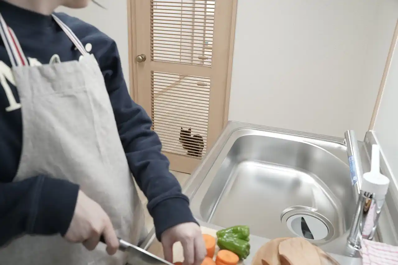 キッチンに進入されずお料理中もねこの様子がみられる |