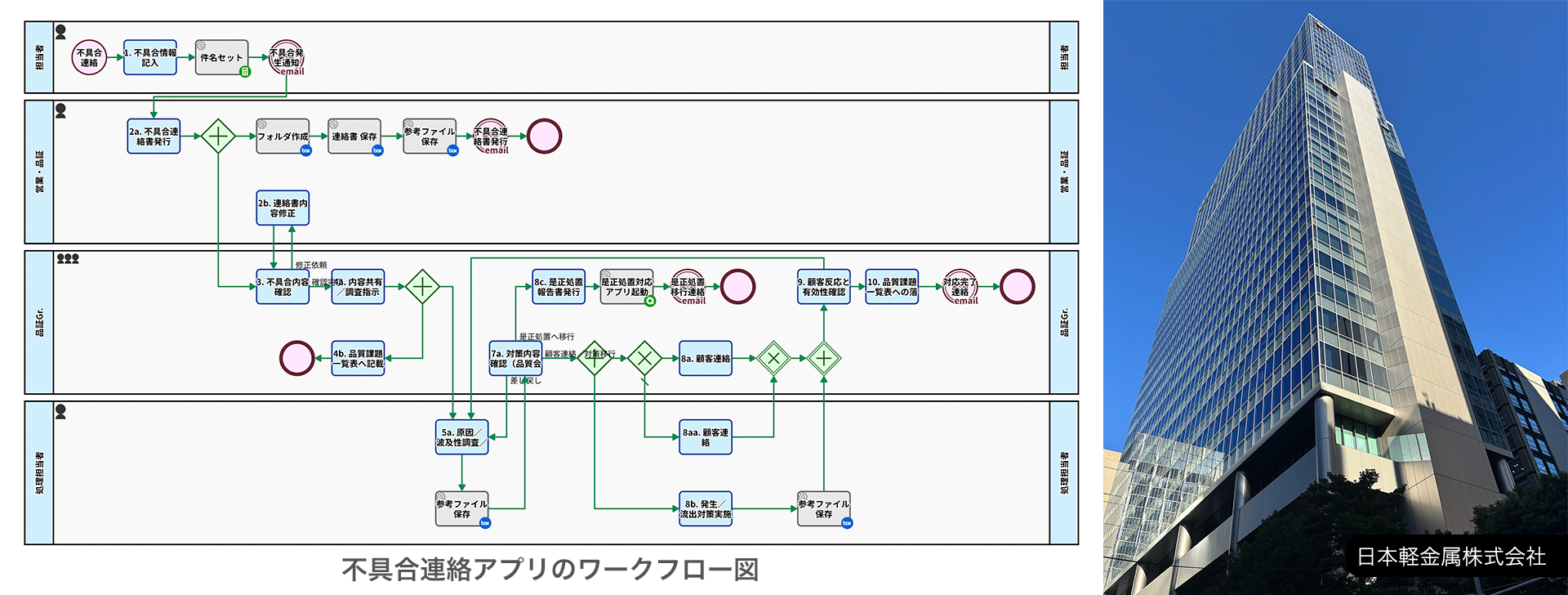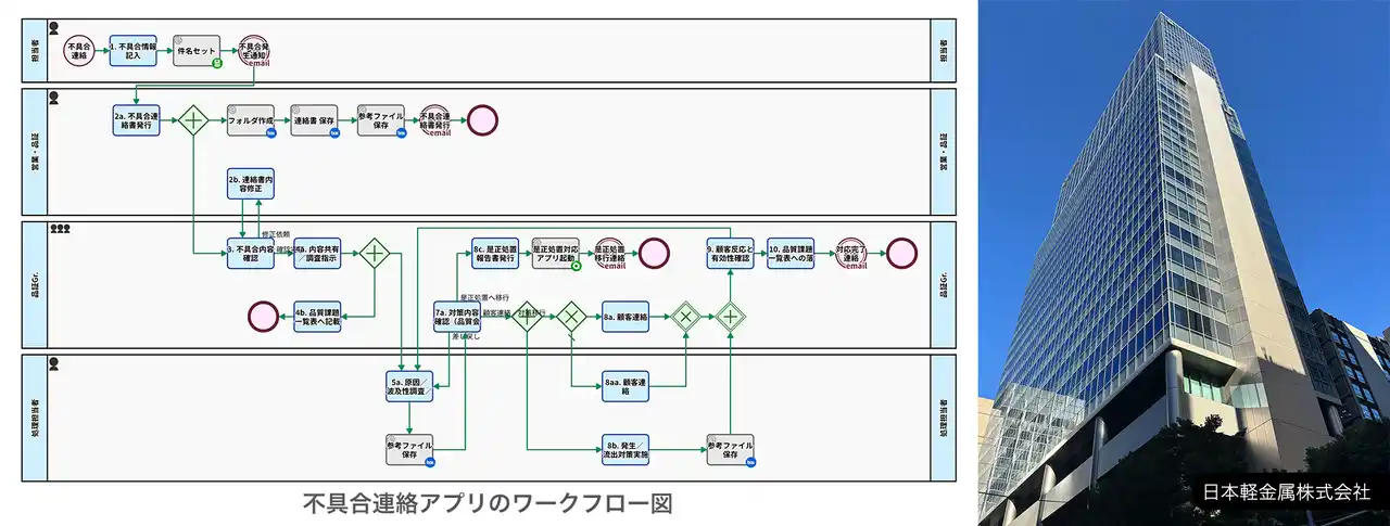 構築されたアプリのワークフロー図/日本軽金属 本社