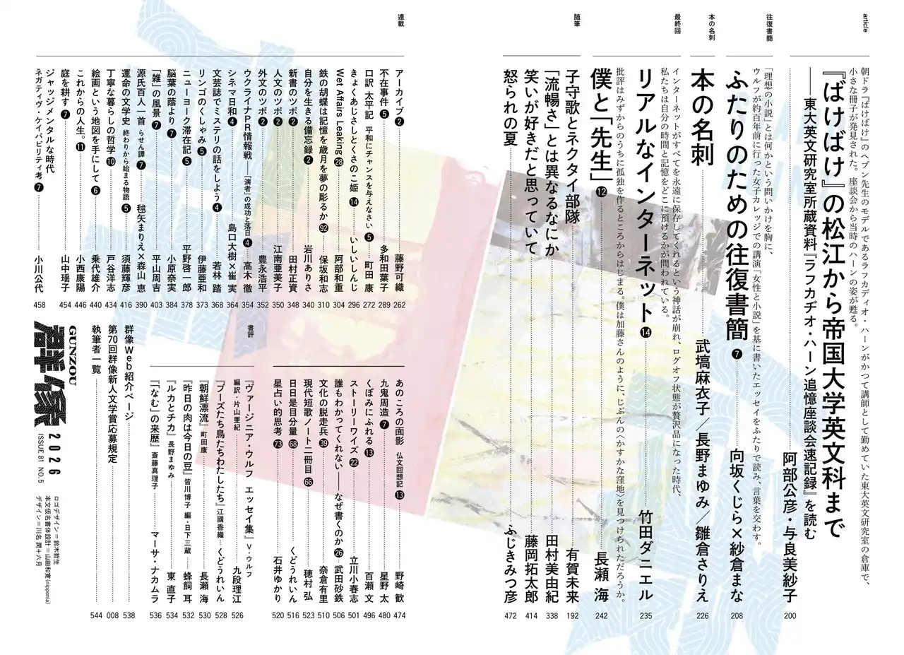 「群像」2026年4月号目次2. |
