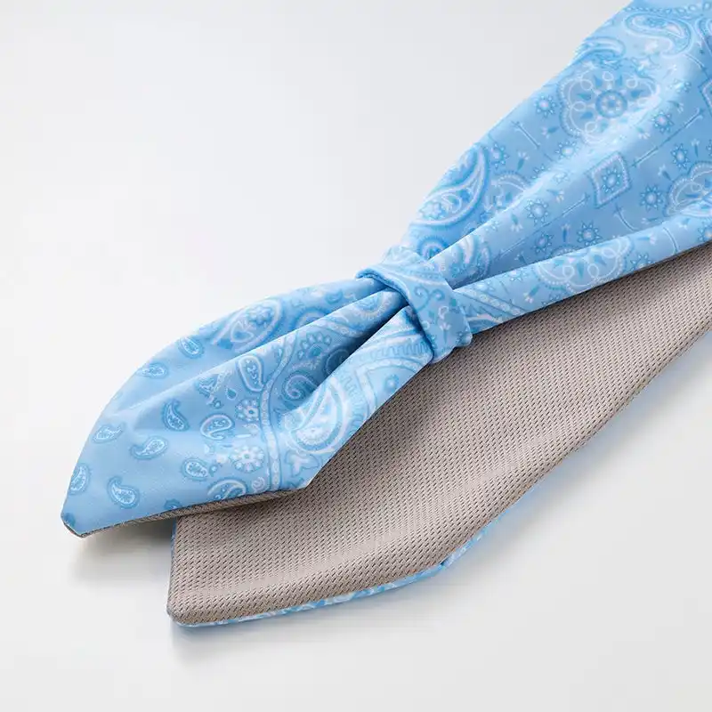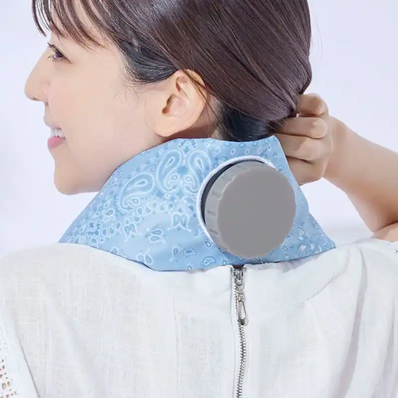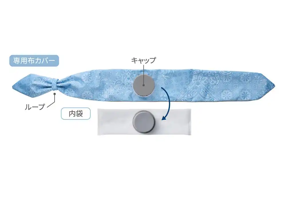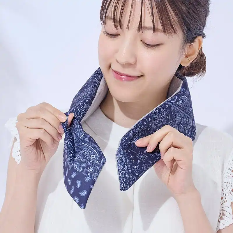 巻いた瞬間から首元をひんやり冷却する、スカーフタイプの氷のうです。内袋に水や氷を入れて、首に巻くだけで手軽に使用でき、ハンズフリーで快適にクールダウンできます。通勤・通学、スポーツ観戦やレジャーなど、暑い季節の外出時にも便利にお使いいただけます。涼しげなカラーとペイズリー柄の組み合わせは、ファッションのポイントとしても取り入れやすく、おしゃれに暑さ対策が可能。専用布カバーは単独で水洗いできるので、汗をかいても清潔に保てます。 |