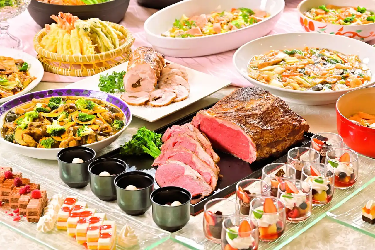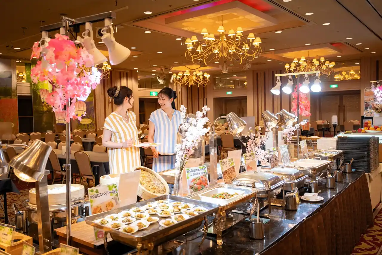 「春の東北六県うまいもの巡り」をテーマにしたディナービュッフェは、和・洋・中華の料理の他に、旬のいちごスイーツを多数ご用意しています。 |