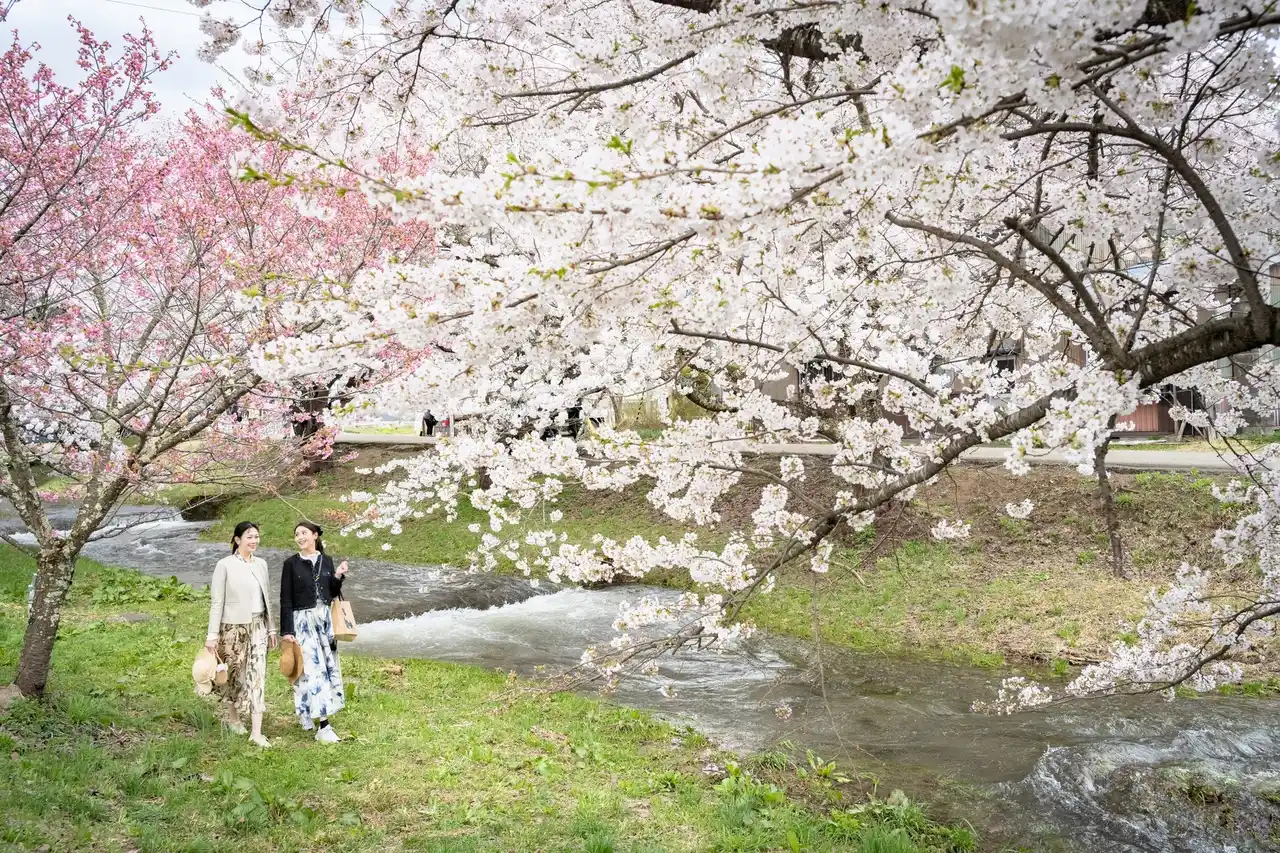 リステルより徒歩10分。雪解け水が流れる小川沿いに、約1kmの桜並木が続く福島を代表する景勝地。お花見弁当でピクニックも楽しめます。 |