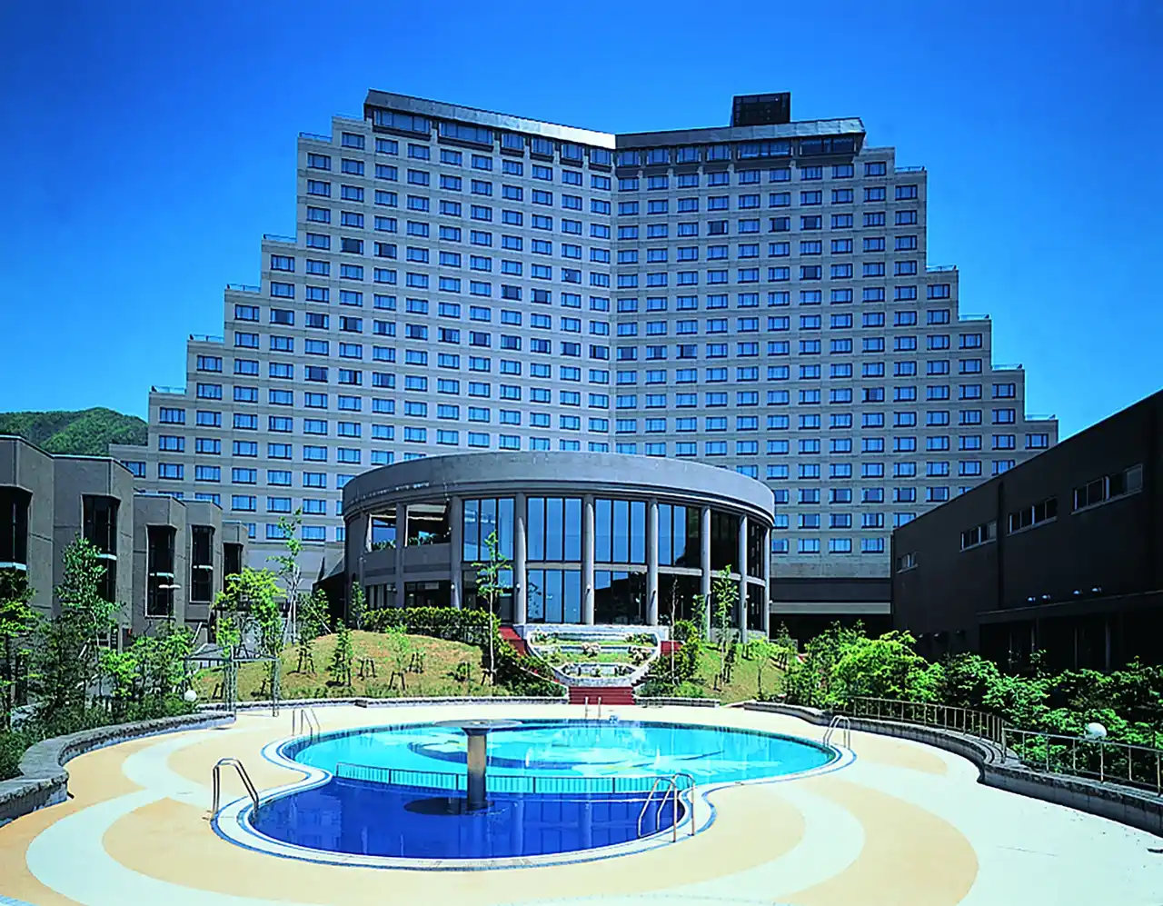 ホテル全景とガーデンプール、スパドーム |