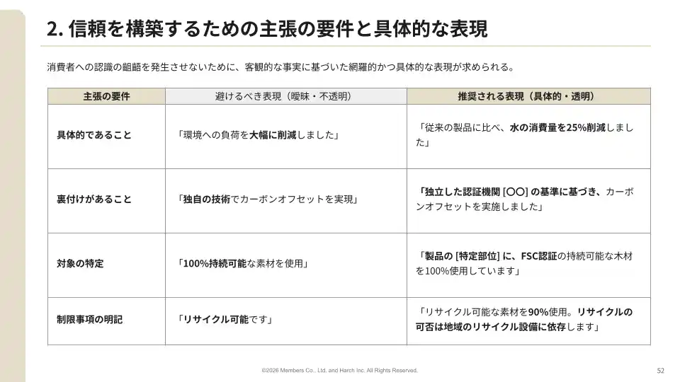 グリーンウォッシュを防ぐための注意点にとどまらず、「マーケティングと市場創造」を目的とし、実務担当者向けの基本原則や、国内外事例、実践ガイドとチェックリストを網羅 |