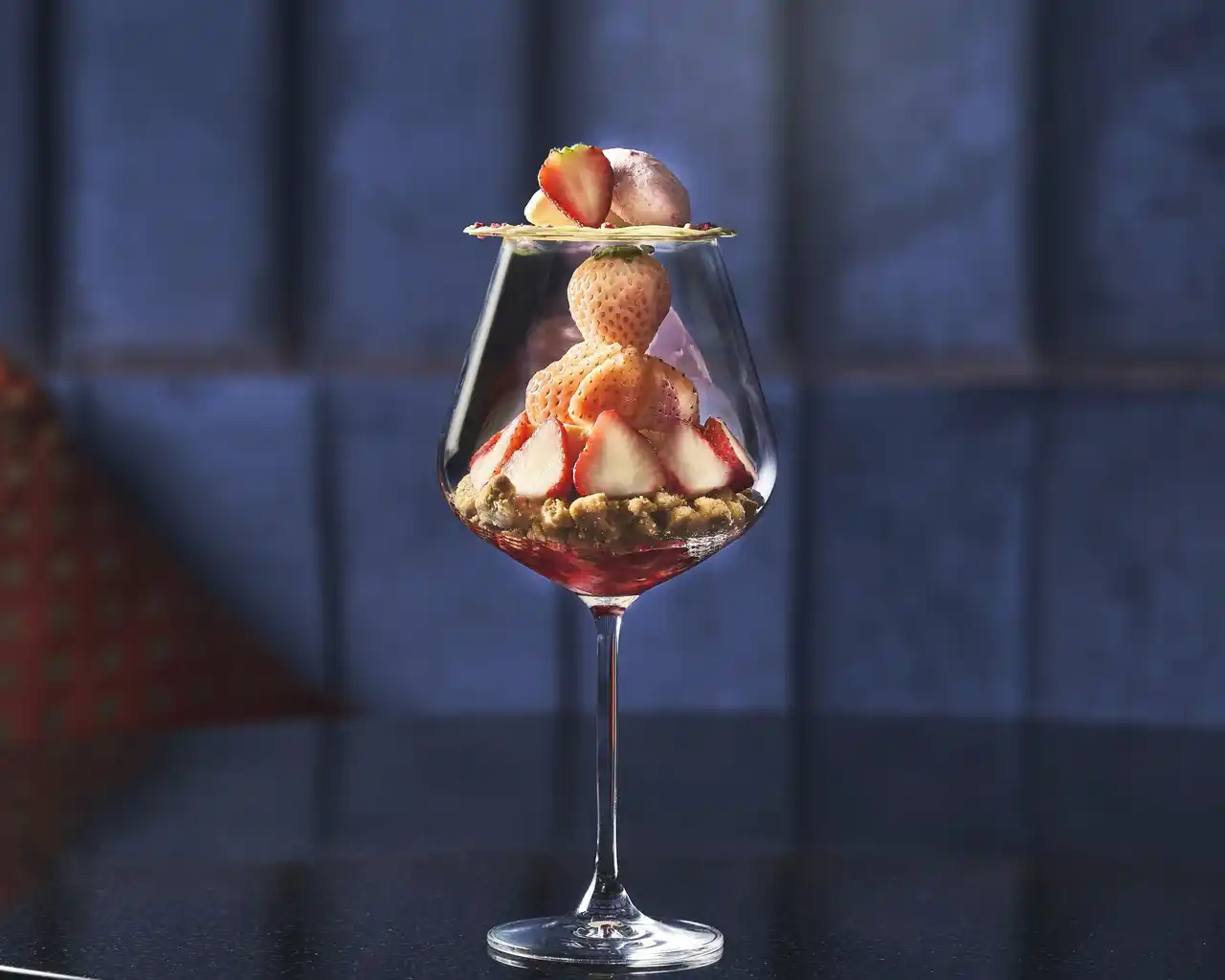 桜と苺を贅沢に重ねた、シーズナルパフェもご用意いたしました。 白イチゴと国産いちごをふんだんに使用し、見た目の美しさと味わいのバランスを追求した一品。グラスの中に丁寧に重ねられた層が、食べ進めるごとに異なる表情を見せ、最後まで飽きることなく楽しめます。 |