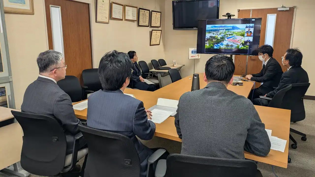 独立行政法人国立高等専門学校機構では、平成30年度よりPCSHSの学生をタイ政府奨学金留学生として受け入れており、高等専門学校の国際化を推進しています。今回、仙台高等専門学校からの提案を受け、鳥羽商船高専はPCSHSロッブリー校と学生の相互派遣を含む学術交流について合意に至りました。 当日は、両校の紹介や交流に関する説明の後、PCSHSロッブリー校のSakda Khamso校長と鳥羽商船高専の澤田圭樹副校長が協定書等に署名しました。Sakda校長は、「本協定が両校の連携の重要な第一歩となり、学生・教員の交流や文化理解の深化につながることに期待している」などと述べました。また、澤田副校長は「今回の提携を契機として相互理解を深め、両国の若い才能がともに学び成長していくことを期待しています」と挨拶を述べました。 鳥羽商船高専では、今後も国際交流の充実を図り、グローバルに活躍できる人材の育成に努めてまいります。 |