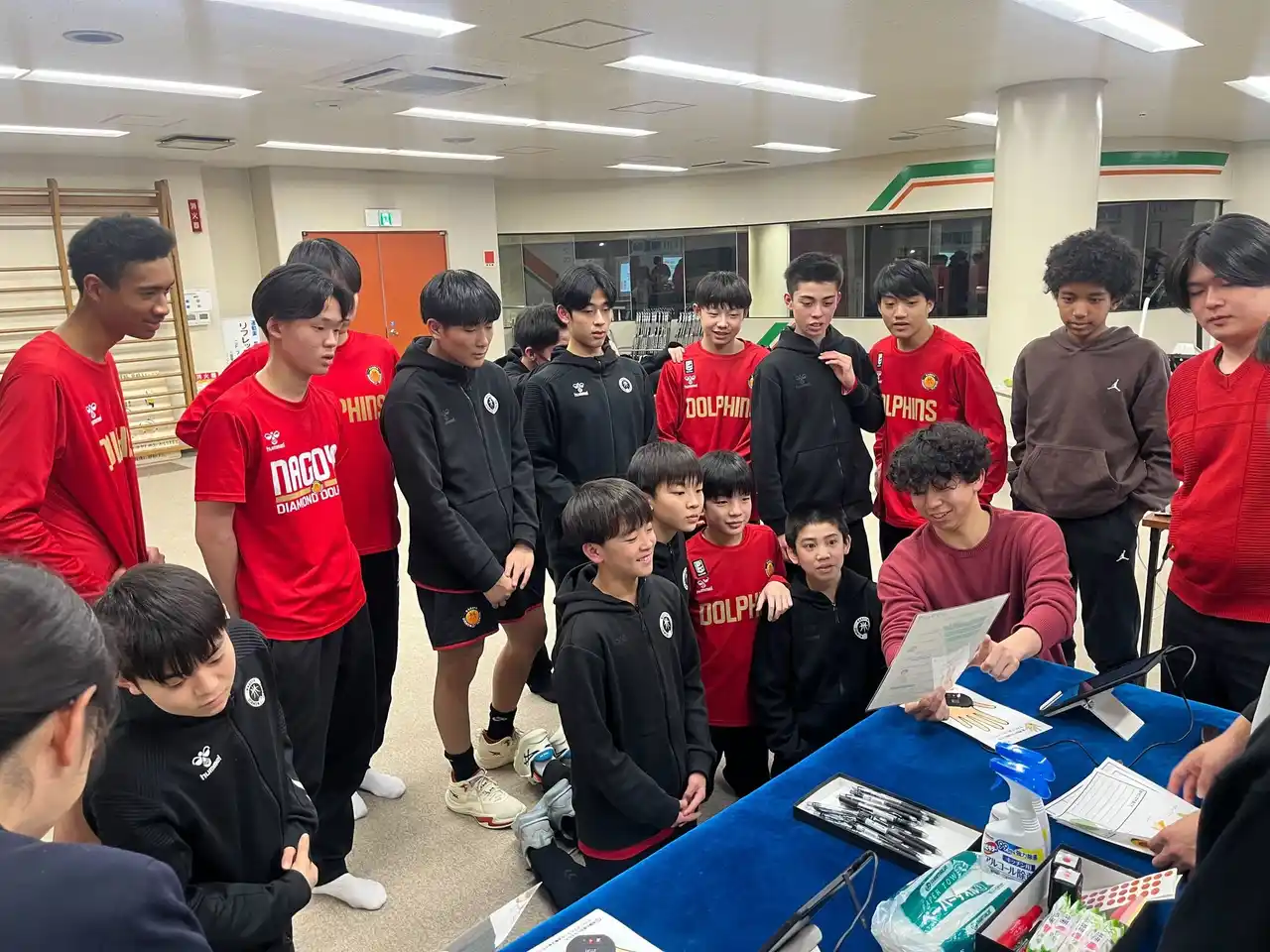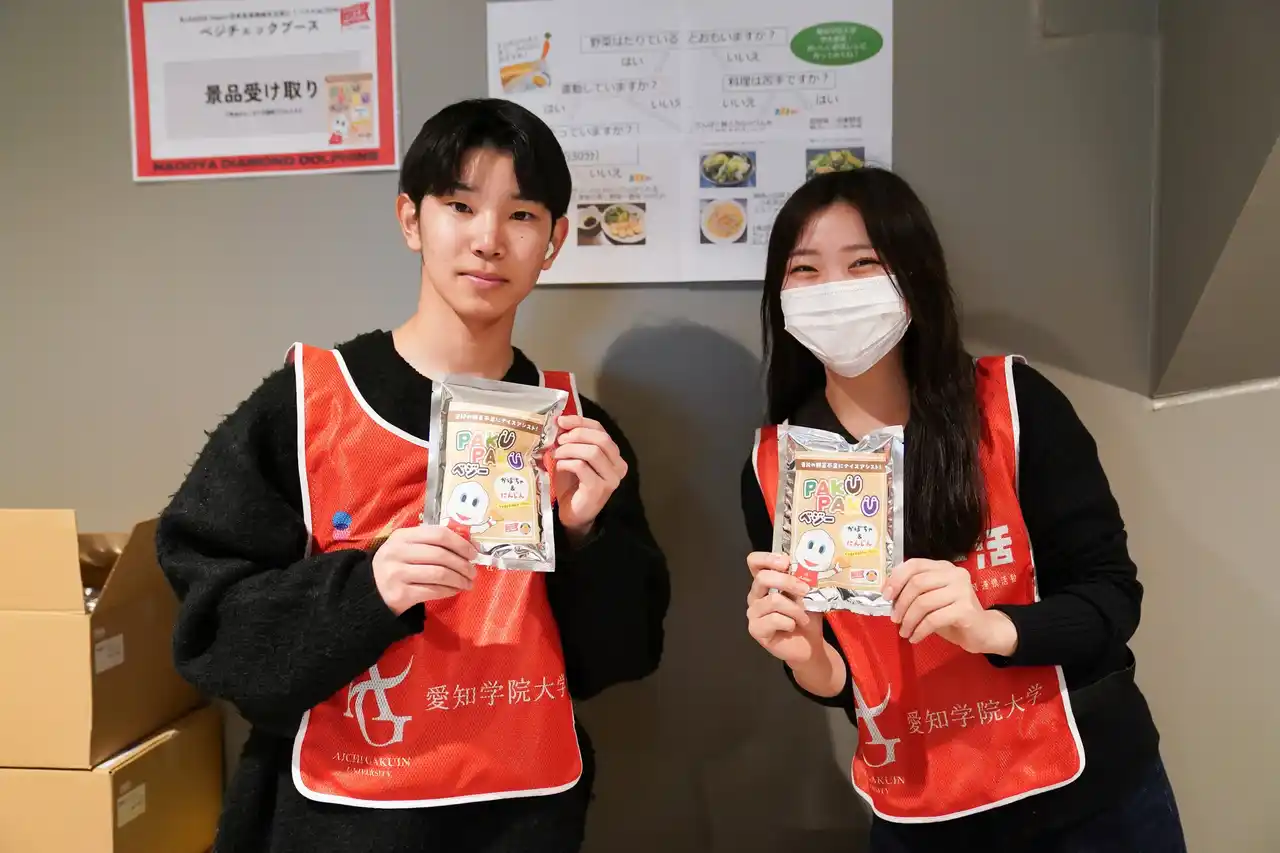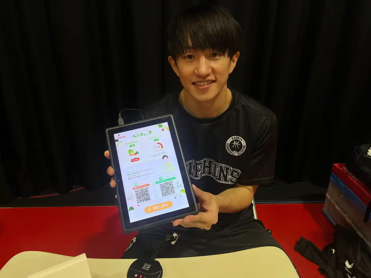 実施日:2026年2月5日(土)、2月6日(日) 会場:三菱電機名古屋体育館 対象:名古屋ダイヤモンドドルフィンズ U15男子・女子 本取り組みは、これまで継続してきた栄養教育活動の集大成として実施したものです。ホームゲーム会場では、多くのファンの皆さまにべジチェックへご参加いただき、自身の野菜摂取状況を“見える化”する機会を提供してきました。今回は、その測定結果や傾向を活用し、クラブの次世代育成へと還元しました。 |