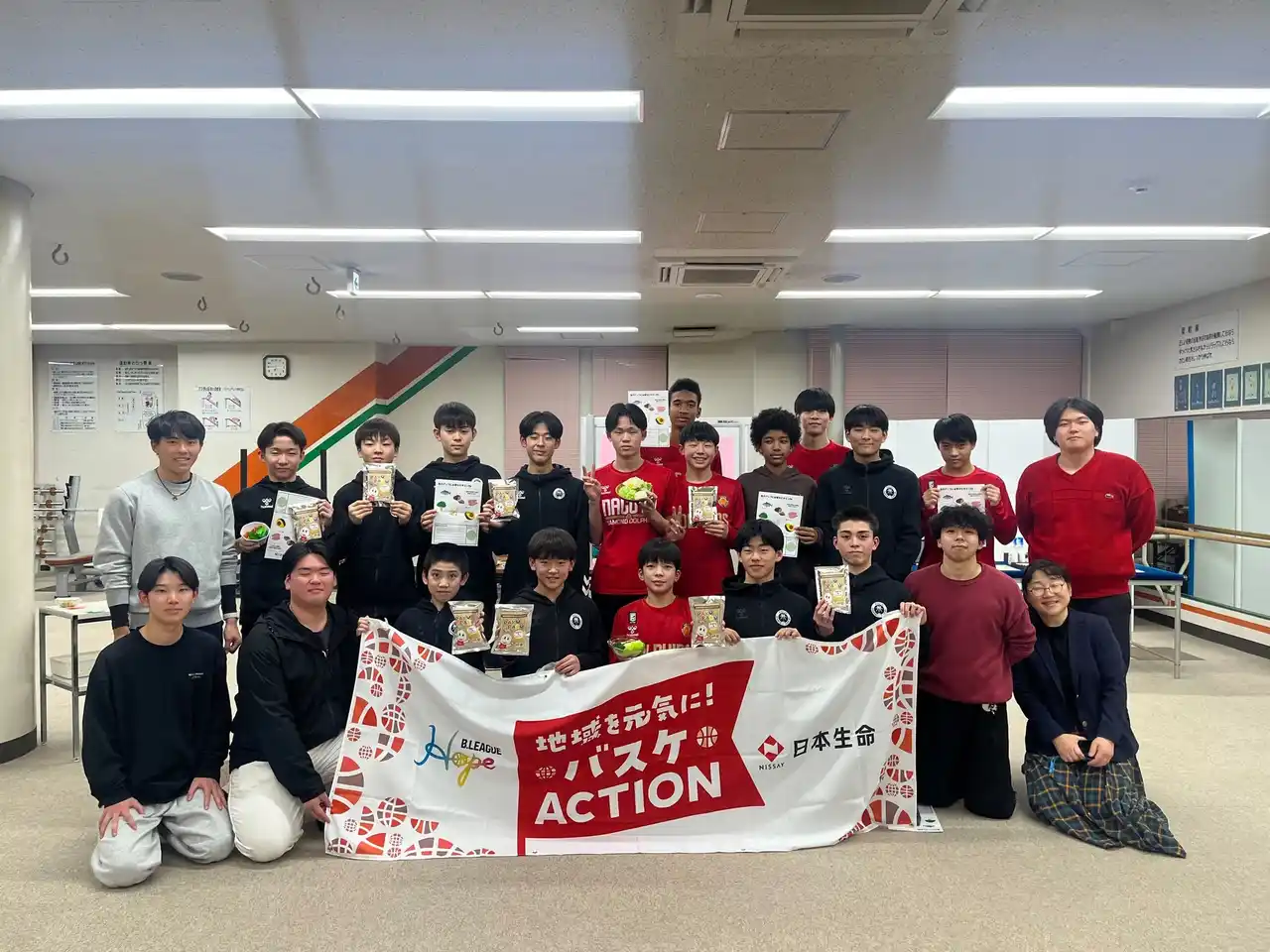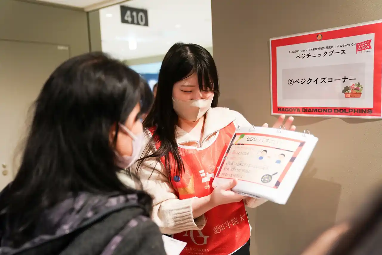 日本生命保険相互会社 名古屋南支社・名古屋東支社 様、愛知学院大学 健康栄養学科 様とともに、B.LEAGUE Hope×日本生命 地域を元気に!バスケACTION「日本生命×愛知学院大学 健康栄養学科~べジチェックを活用した栄養教育~」プログラムを実施しました。 「B.LEAGUE Hope×日本生命 地域を元気に!バスケACTION」公式HPは▶こちら |
