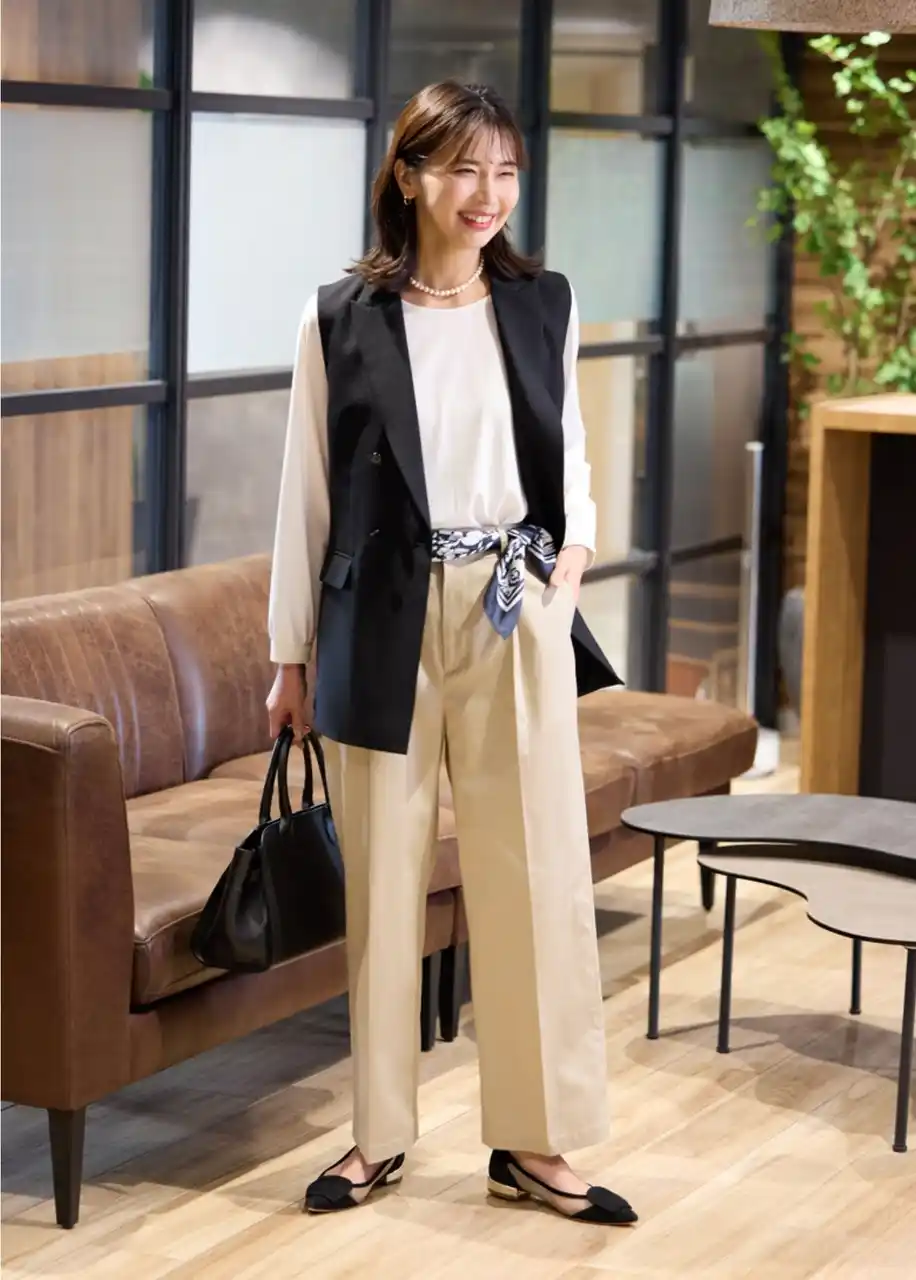 | 軽やかに羽織るだけで装いが引き締まり、通勤や会議などきちんと感が求められるシーンにも活躍。シームレスに着回せるジレは、日常の装いを格上げしてくれる頼れる一着です。 | |||