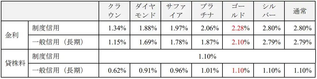 ゴールドプランの制度信用取引・一般信用取引(長期)の買方金利および売方貸株料の水準を引き下げます。引き下げ後の水準は以下のとおりです。 |
