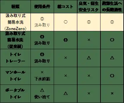 臭いや衛生面の不安などの課題がありながらも継続的に使用できる点から、現在も一定規模以上の避難所や長期運用が想定される場面において不可欠とされています。