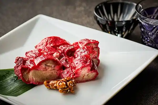 きめ細かく柔らかな肉質ながら、弾力がありジューシーな味わいが特徴の“鹿児島県産黒豚”の肩ロースを使用します。爽やかな甘みの桂林特製タレに一日漬け込み、直火で焼き上げます。表面は香ばしく中はしっとりと、凝縮された肉の旨みをご堪能いただけます。 |