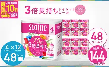 スコッティフラワーパック3倍長持ち トイレットペーパー48ロール |