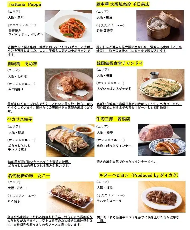 関西人が“ホンマにうまい!”と唸るツウな飲食店50店舗以上が集結!出店店舗の第1弾を発表!