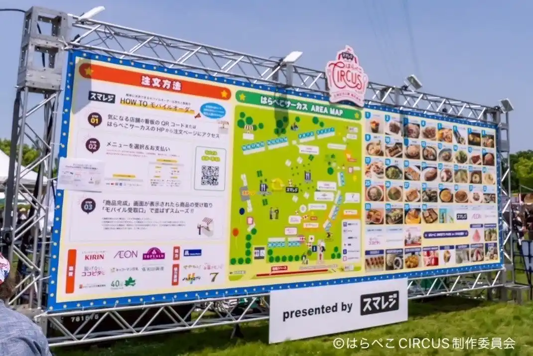 はらぺこサーカスでは「スマレジ」の注文・決済システムを導入。店頭決済はもちろん、スマホ1台でメニューチェックからオーダー・決済まで完結するモバイルオーダーは、このイベントならではの特徴の1つ! |
