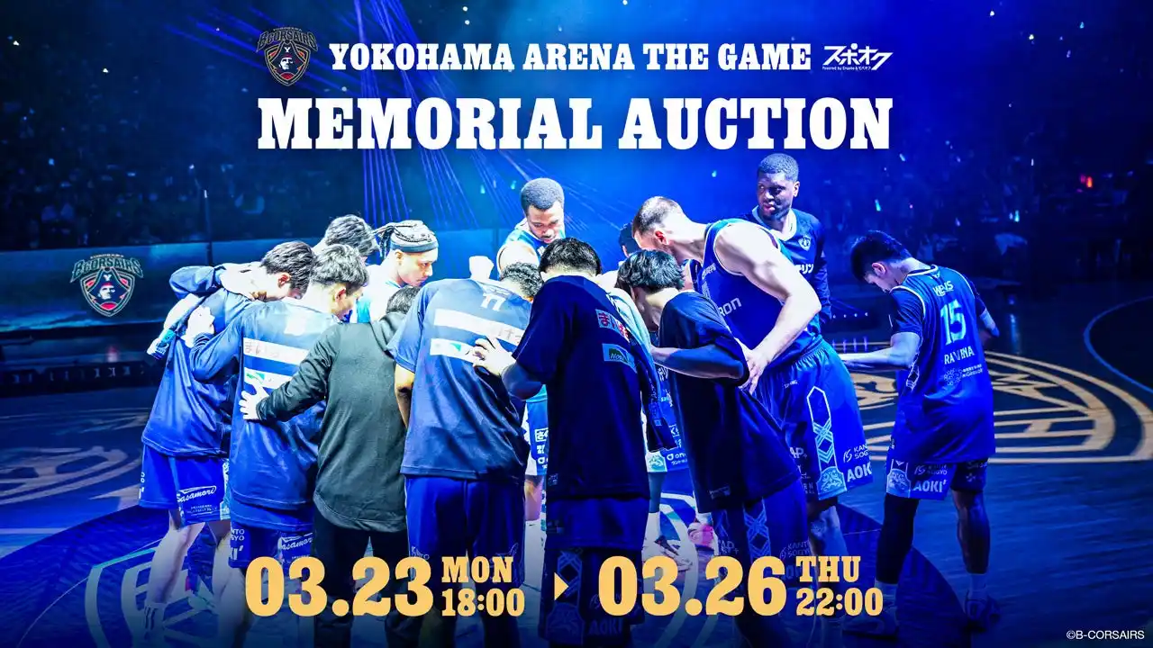 株式会社モバオク(本社:東京都渋谷区、代表取締役社長:小一原 宏樹、以下モバオク)がエンゲート株式会社(本社:東京都中央区、代表取締役:城戸 幸一郎、以下エンゲート)と業務提携し提供するスポーツチーム公式オークションサービス「スポオク」にて、B.LEAGUE所属の横浜ビー・コルセアーズは2026年3月23日(月)より『YOKOHAMA ARENA THE GAME MEMORIAL AUCTION』を開始します。 |