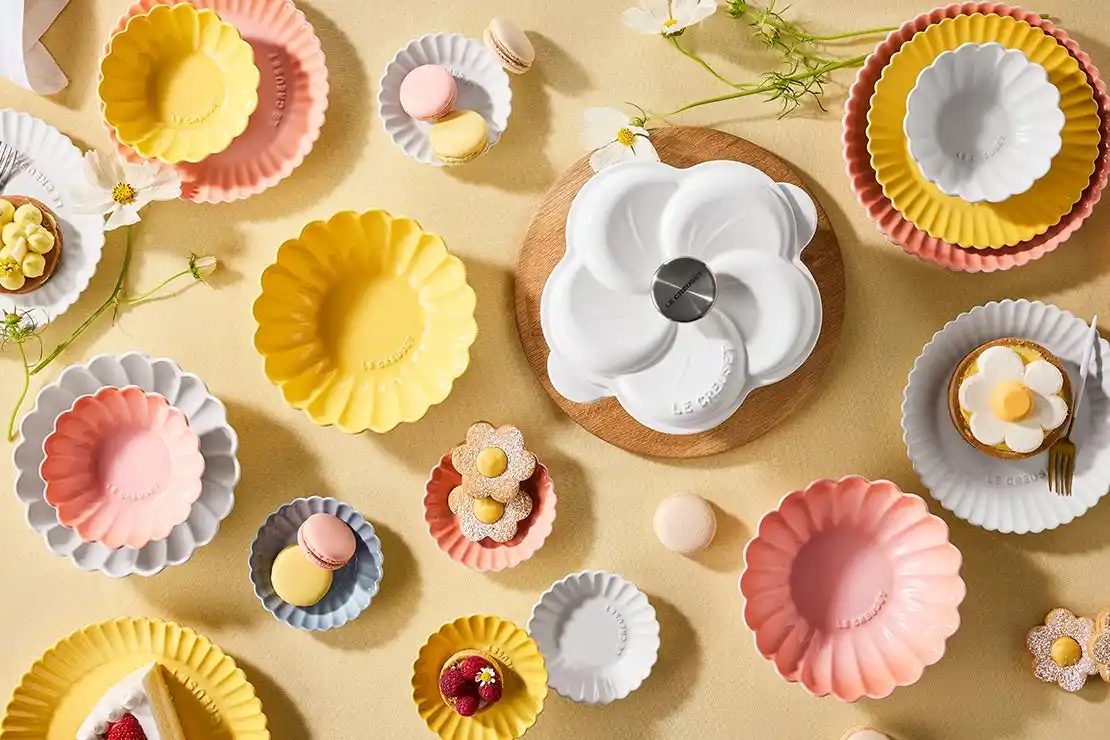 コーディネートも素敵です。ル・クルーゼならではの美しいフォルムと確かな品質で、春の光に映える明るいテーブルを演出をぜひお楽しみください。 |